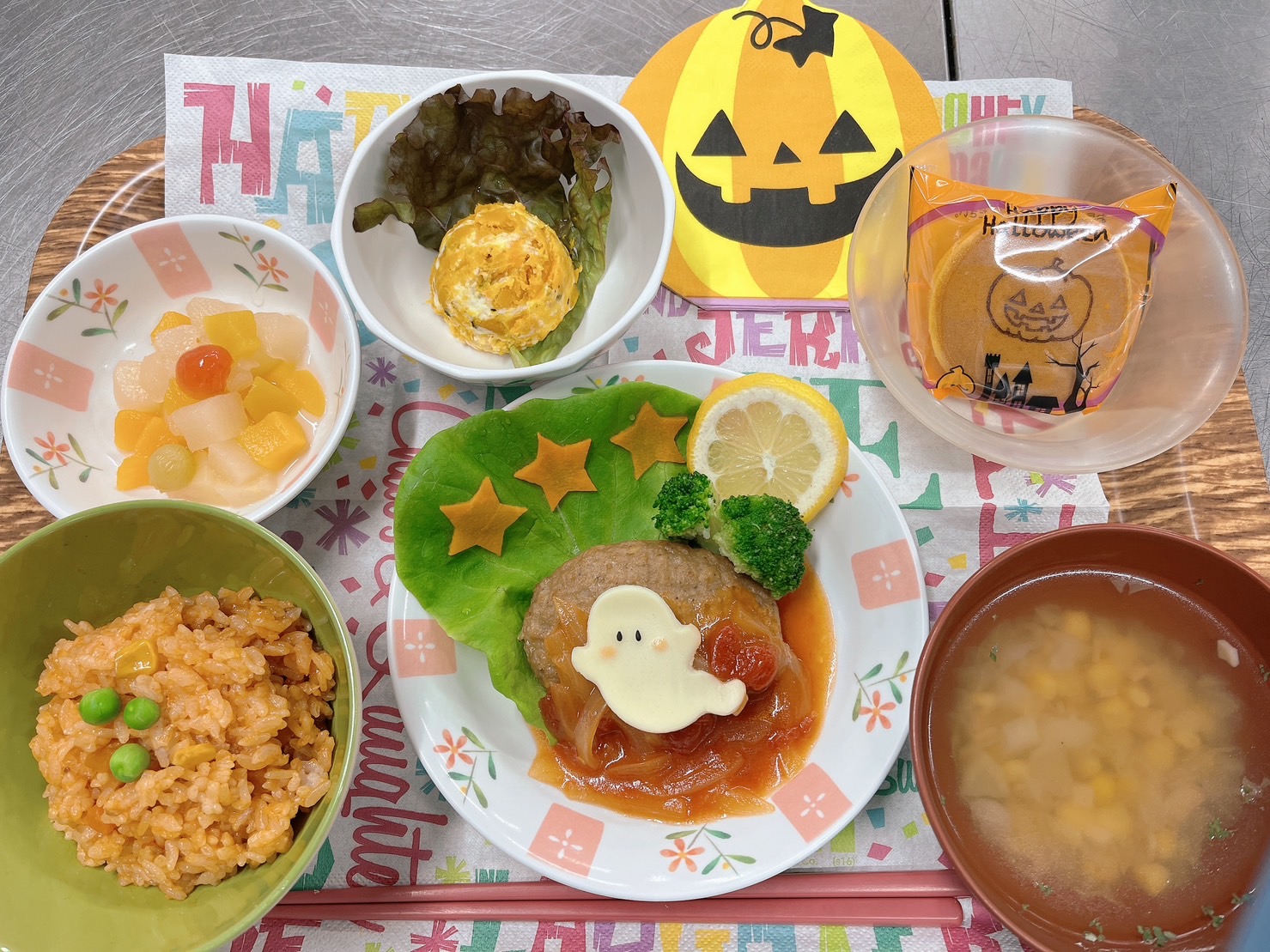 各施設の社員たちが作ったハロウィン給食です。