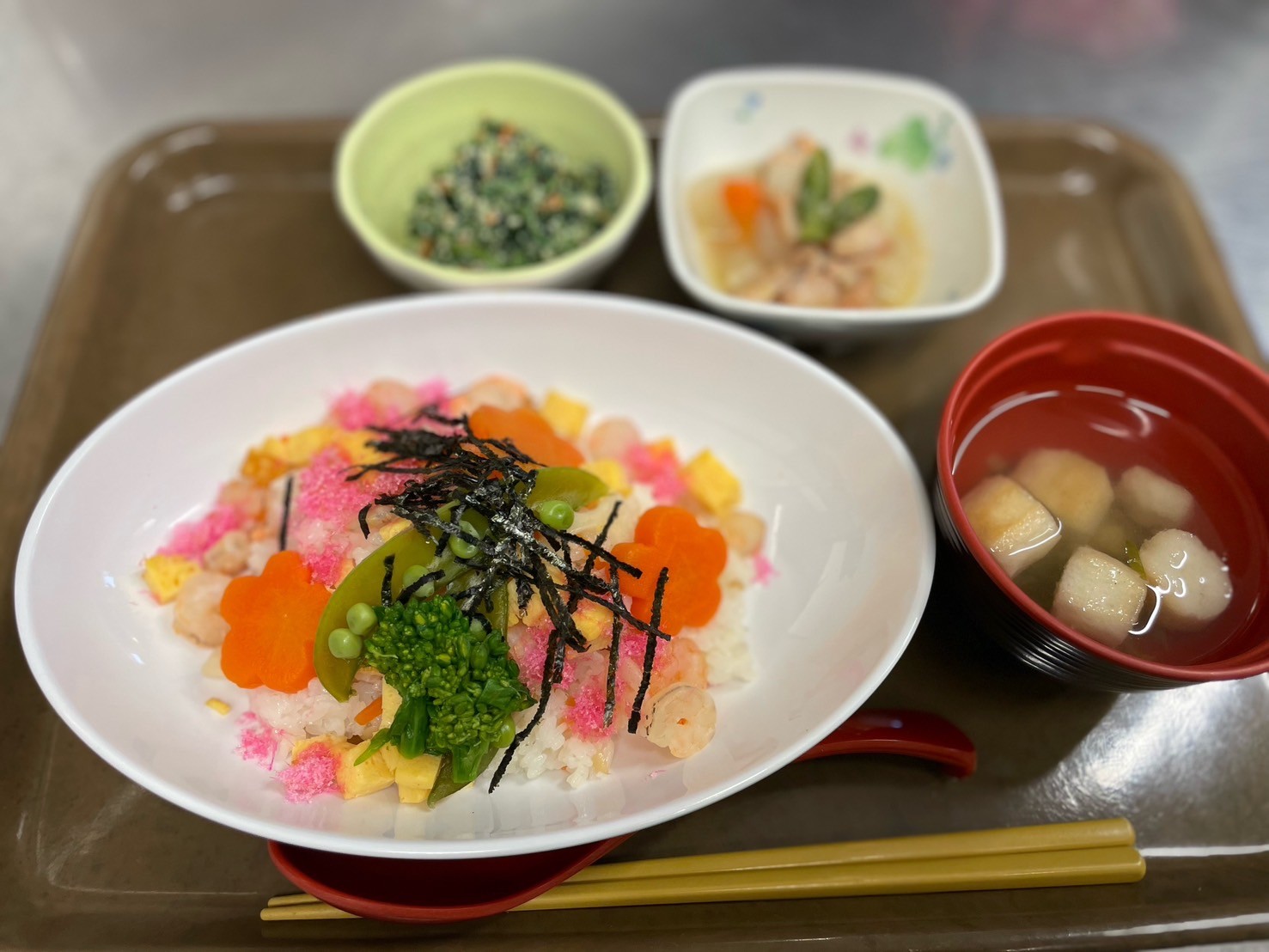ひな祭りと言えば【ちらし寿司】と言うことで、各施設いろいろな盛り付けで色鮮やかなちらし寿司を提供させて頂きました![]()