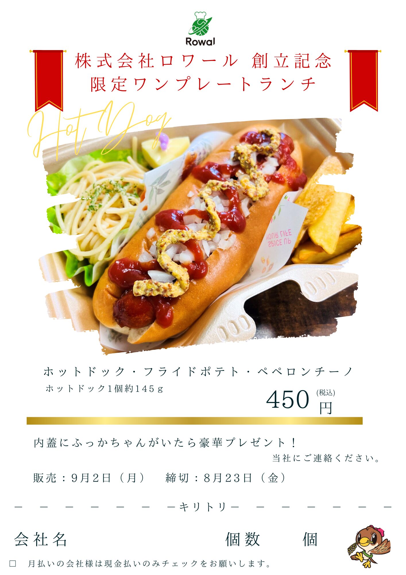 株式会社ロワールの創立記念ワンプレートランチをたくさんの方にご利用いただき、ありがとうございました![]()