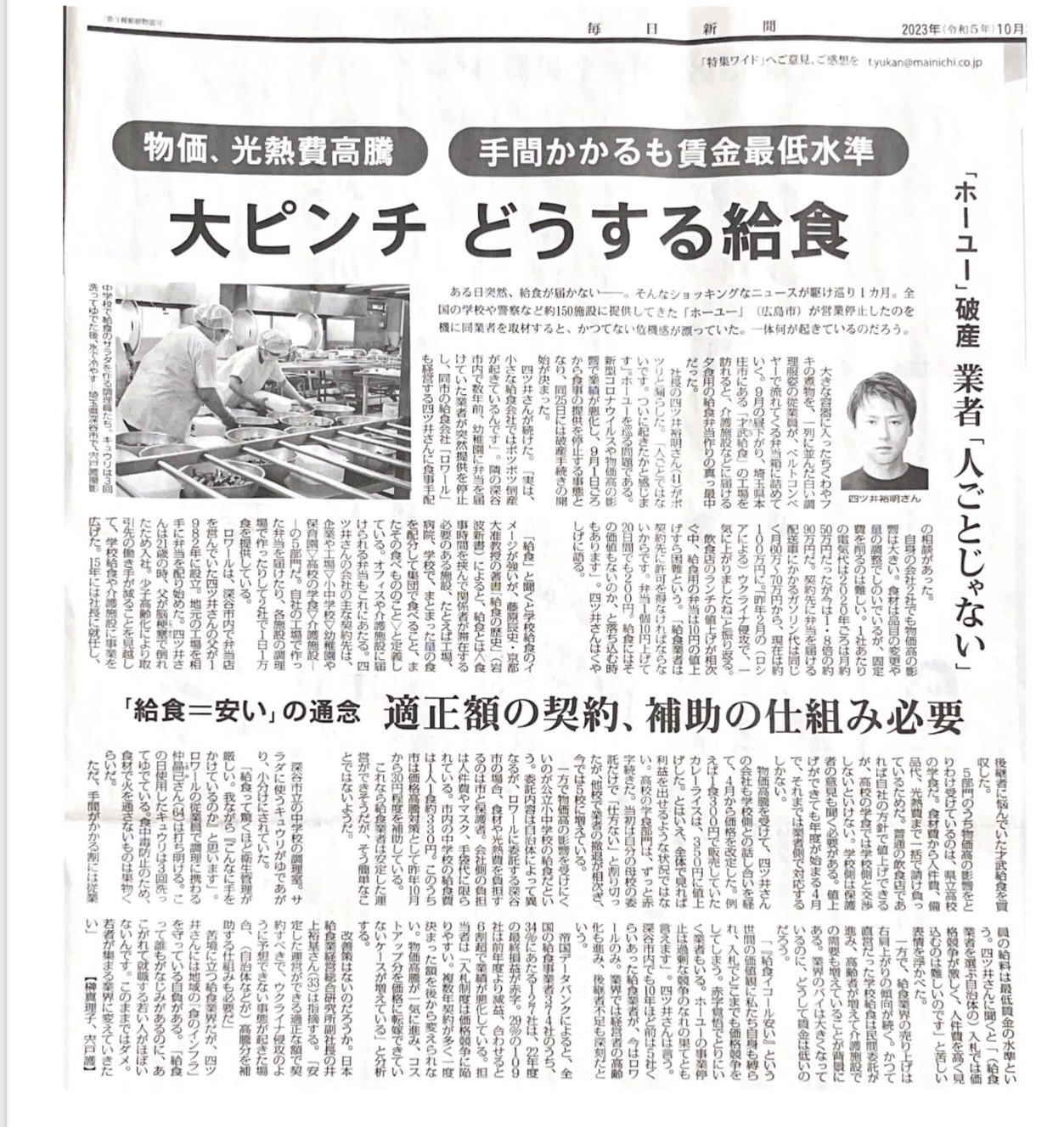 毎日新聞に当社を取り上げていただきました!