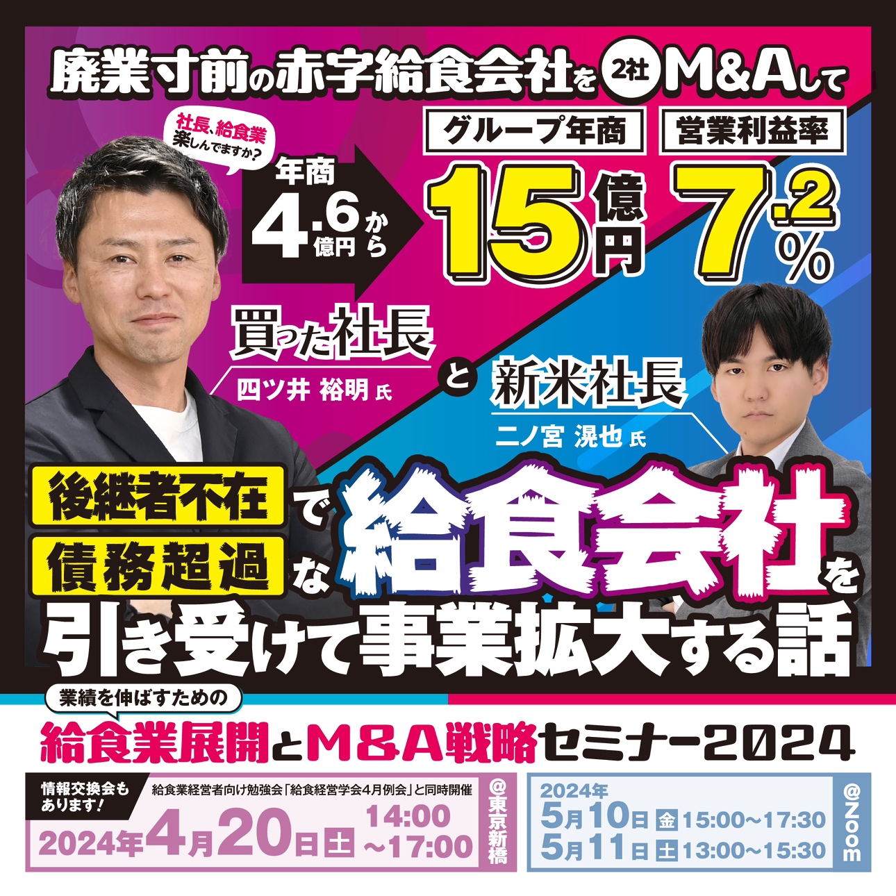 タイトルは「後継者不足で債務超過な給食会社を引き受けて事業拡大する話」というタイトルでした!!