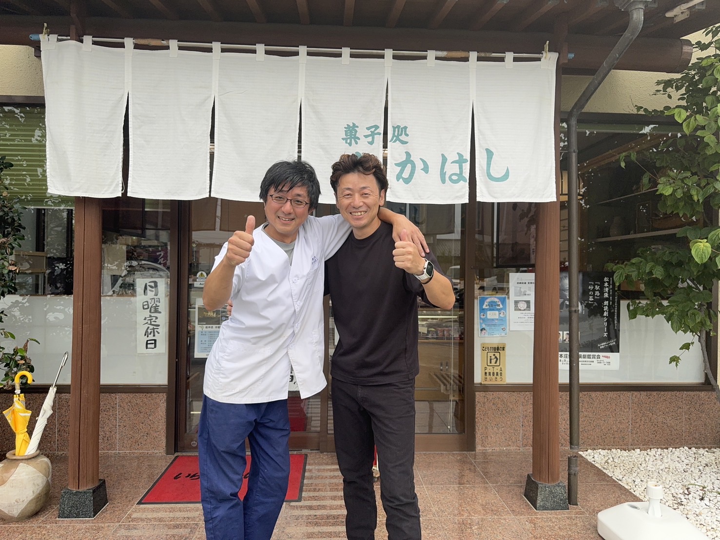 (写真左・菓子処 たかはし 野澤様 株式会社ロワール 四ツ井専務)
