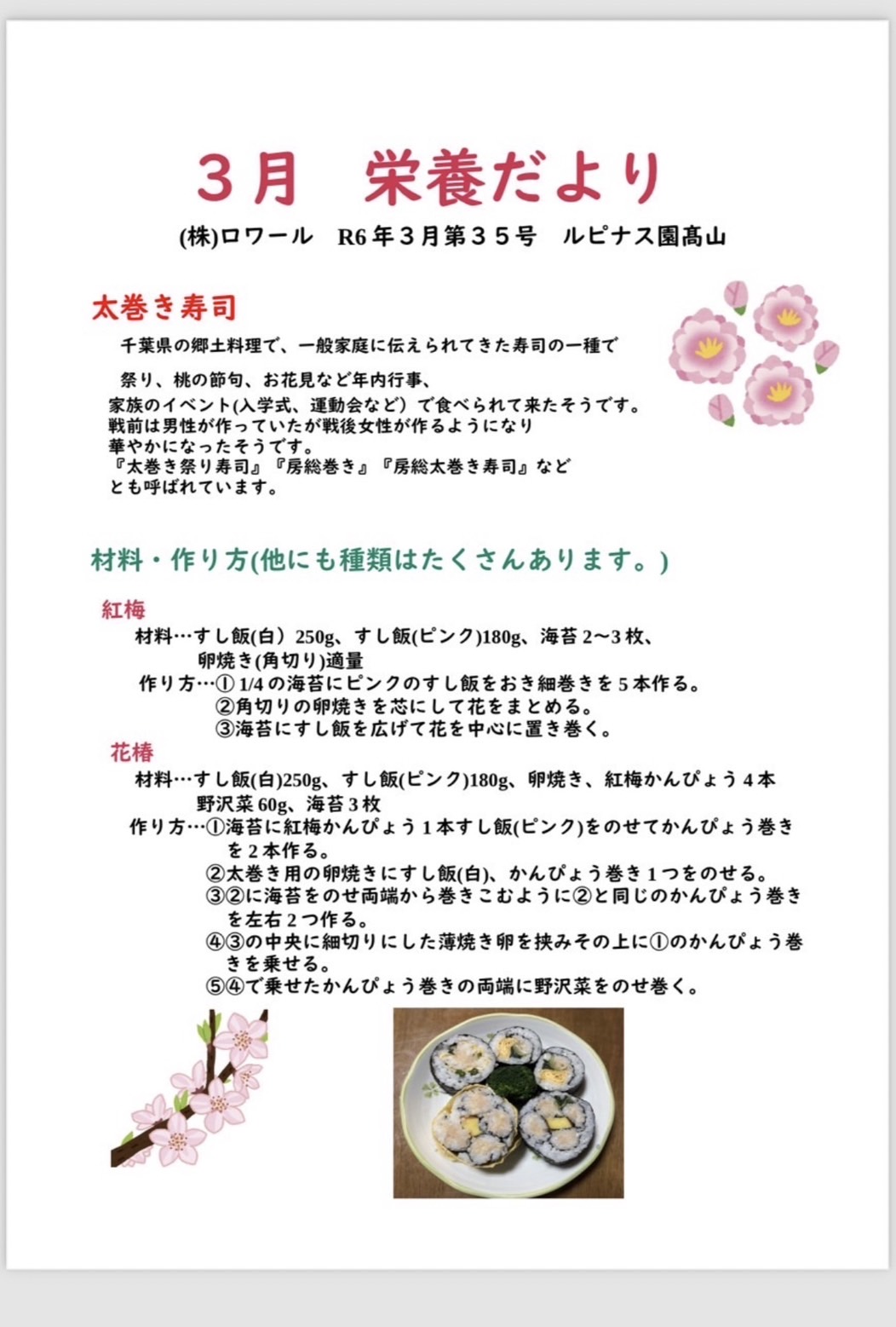 皆さんもぜひ太巻き寿司でお花見を楽しんでみては![]()