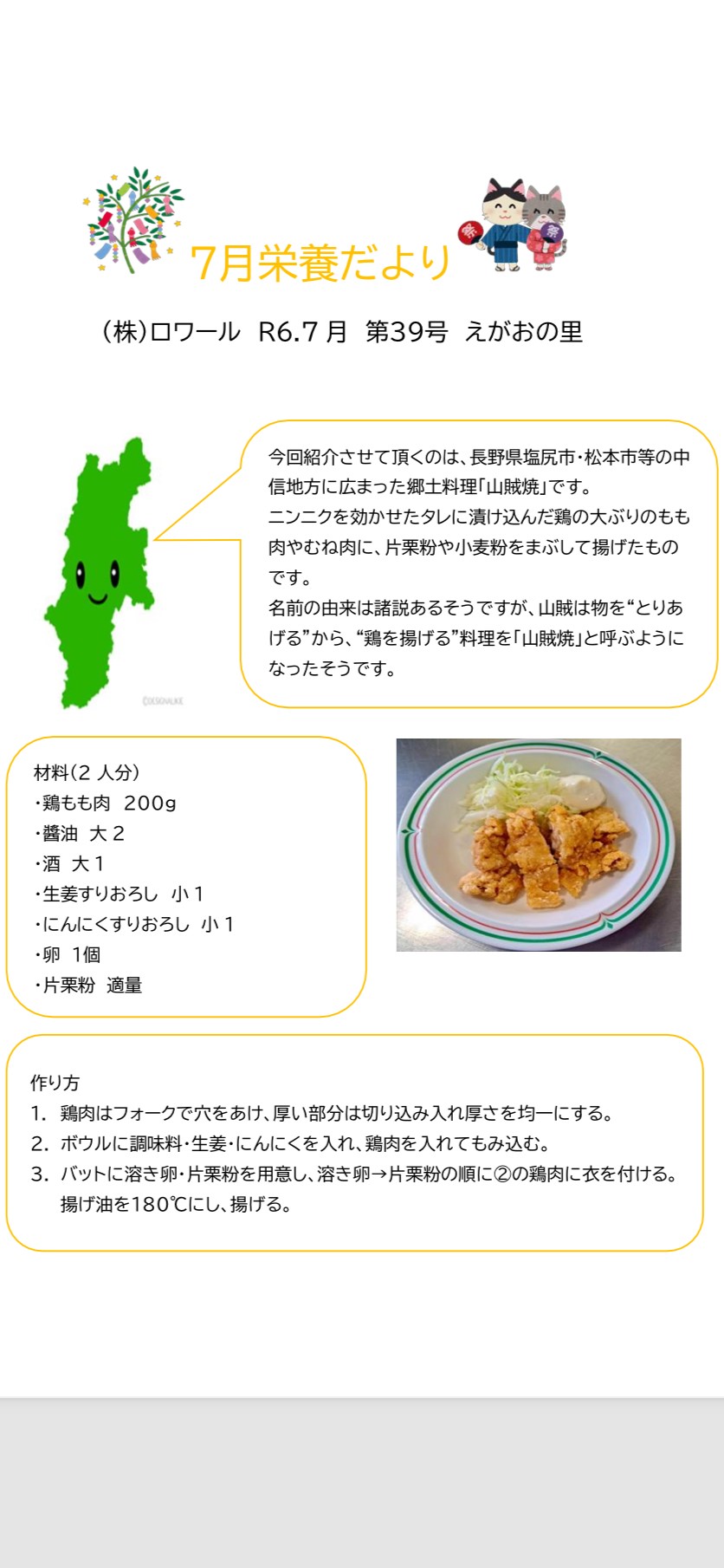 7月の栄養だよりは【ニンニク】を使用した【山賊焼き】です。