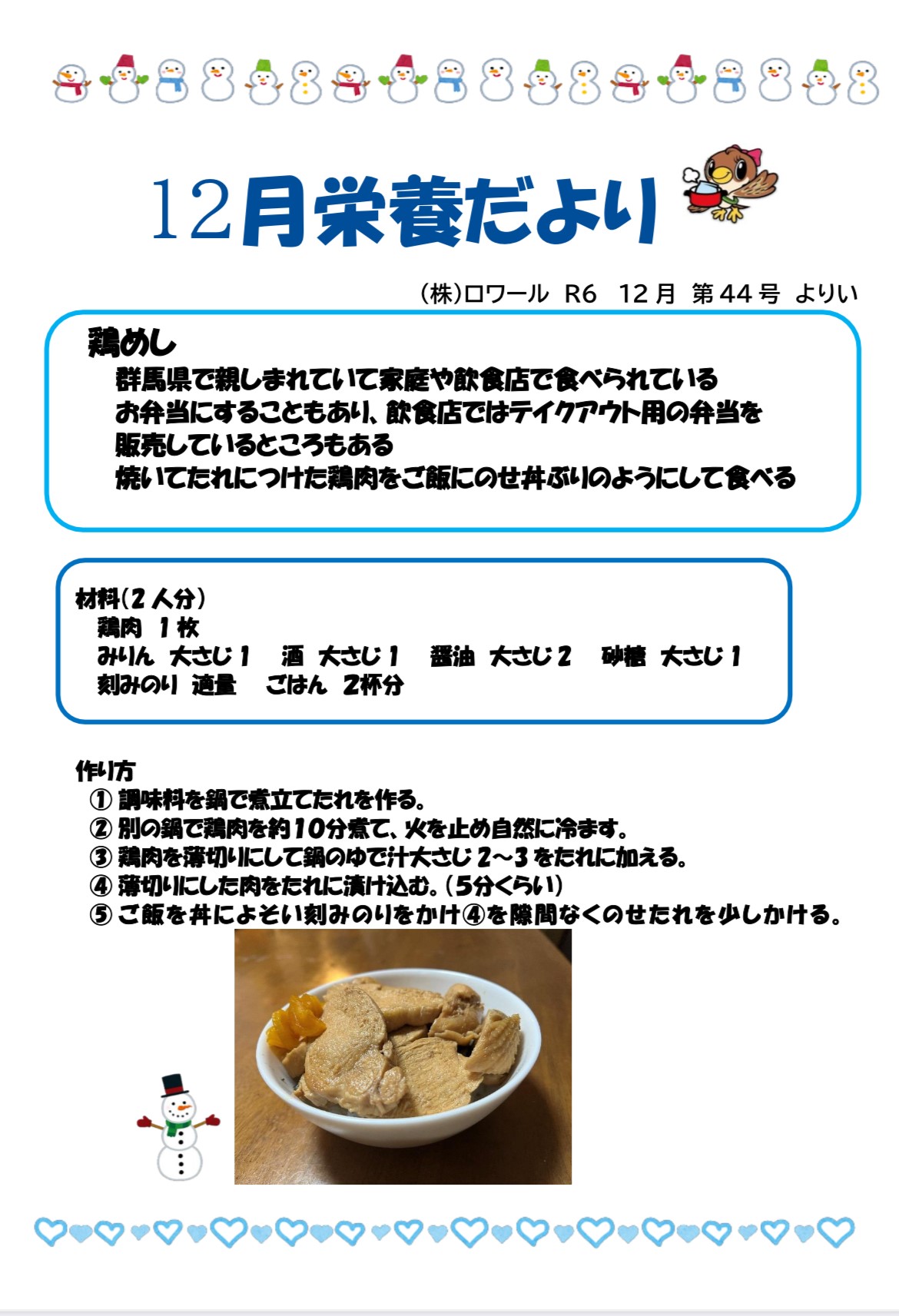 今年最後の栄養だよりは私たち埼玉県民にもお馴染みの群馬名物【鶏めし】です![]()