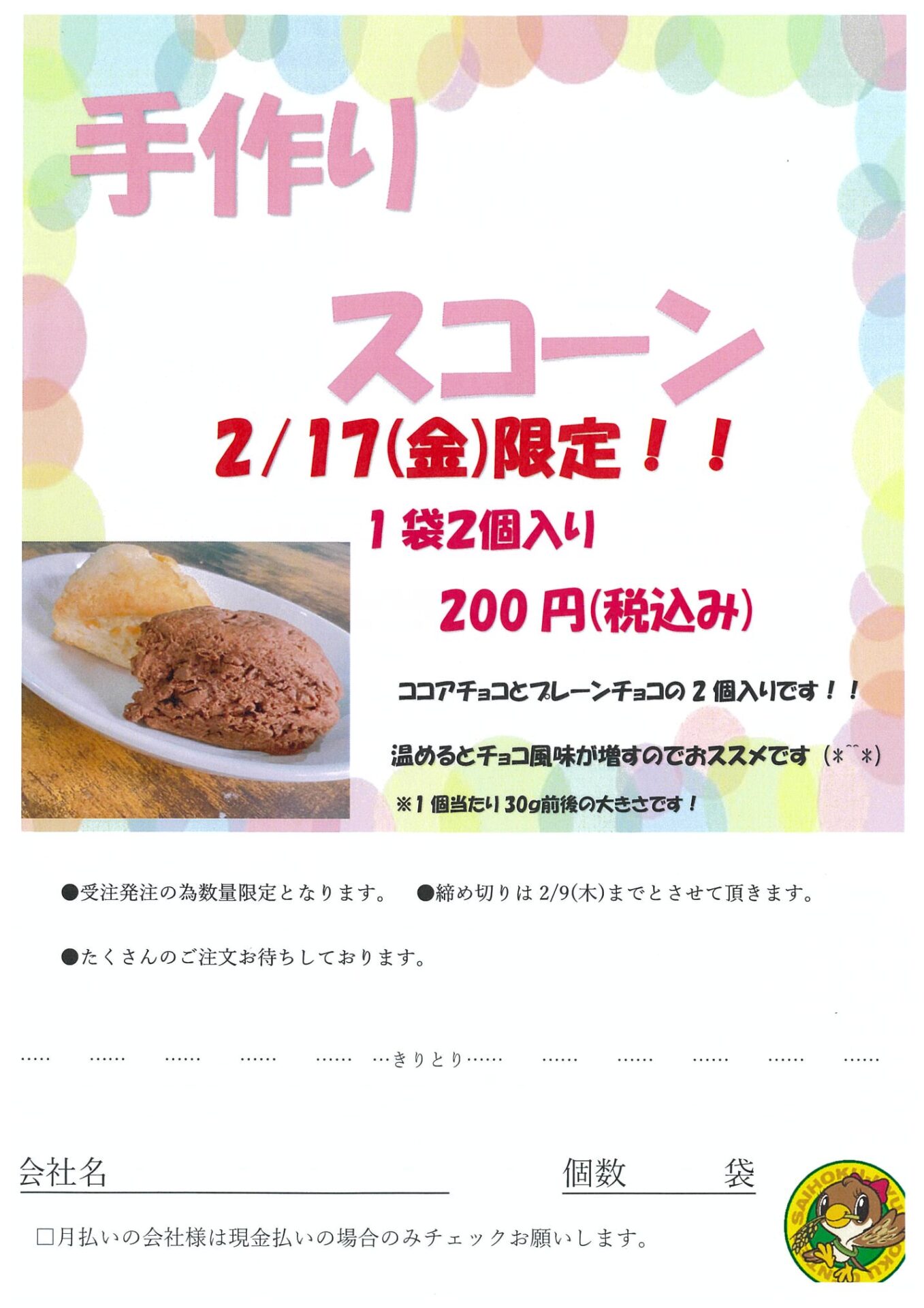 アフターバレンタインで手作りスコーンを提供させていただきます![]()